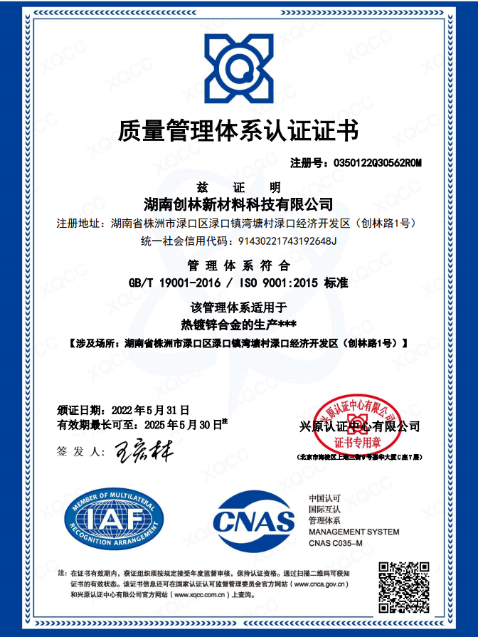 質(zhì)量管理體系認(rèn)證證書(shū)